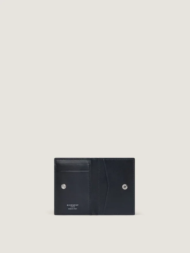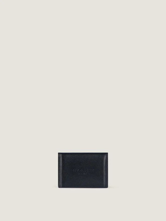 Yastıklı dana derisinden kapaklı kartlık.Antigona damgalı seri.Çıtçıtlı kapama.Ön tarafta Givenchy Paris imzası kabartmalı.İç tarafta gümüş rengi Givenchy Paris imzası.Banknot ve bozuk para için bir bölme.Üç kart yuvası.Renk: Siyah Malzeme: %100 Dana Derisi. Astar: %100 Viskon.dd>
