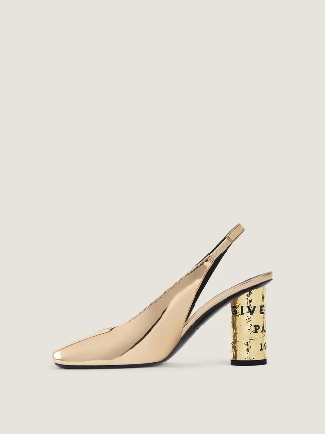 Ayna Efektli Deri Bantlı Slingback Ayakkabılar